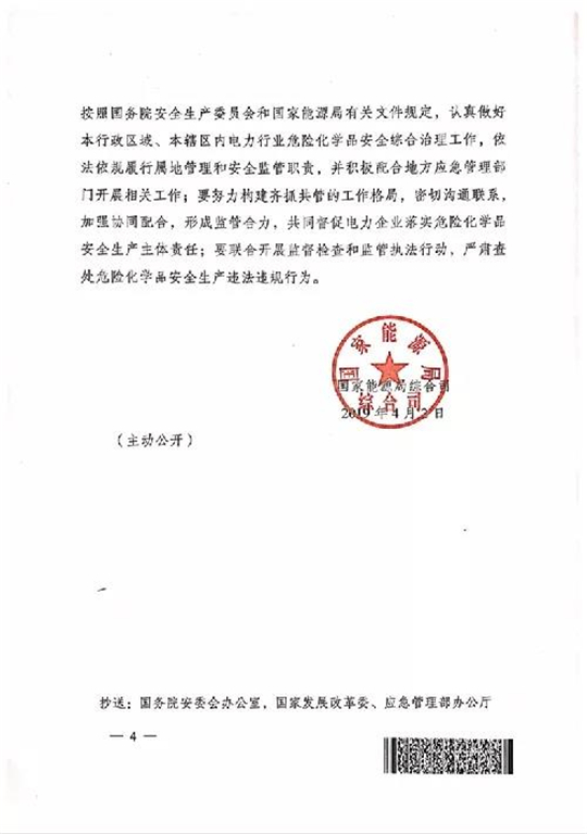 二是全面排查,堵塞危險化學品安全管理漏洞,各省級政府電力管理等有關部門、各派出能源監(jiān)管機構要及時梳理分析本行政區(qū)域、本轄區(qū)內(nèi)電力行業(yè)危險化學品安全狀況,有針對性地提出風險防控措施意見;