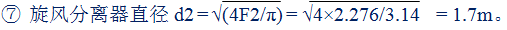 ⑥ 則旋風分離器截面積為F2 = Q/8500 = 19350/8500 = 2.276m2。