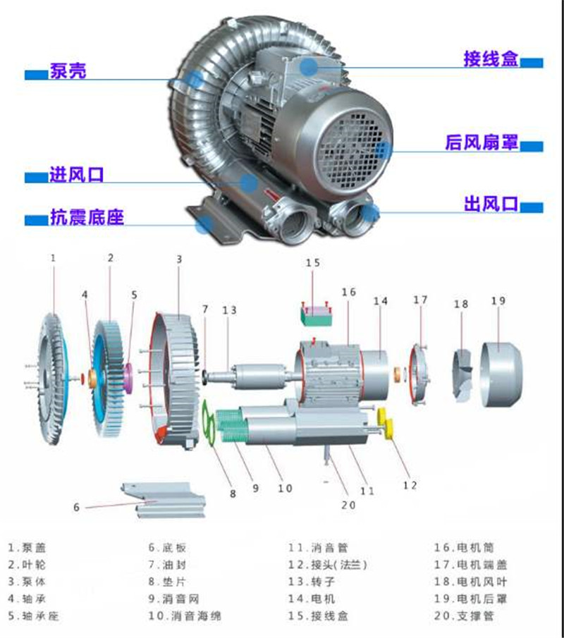 高壓鼓風機在設計條件下,風壓為30kPa~200KPa或壓縮比e=1.3~3的風機就屬于高壓鼓風機范疇,目前行業內一般是把氣環真空泵劃歸為高壓鼓風機。高壓鼓風機,也叫高壓風機,區別于一般離心式高壓鼓風機。