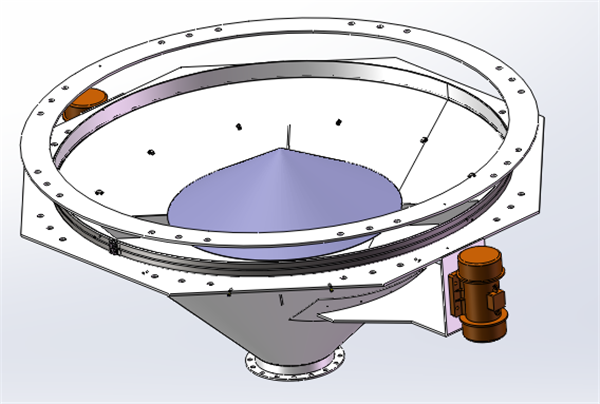 活化料斗由本體、蓋帽組件、彈簧組件、軟連接、法蘭和振動(dòng)電機(jī)等組成。一般安裝在料倉(cāng)底部,起破拱、助流、防止物料架橋的作用;適用于易架橋的物料、粉體物料或流動(dòng)性較差的物料。